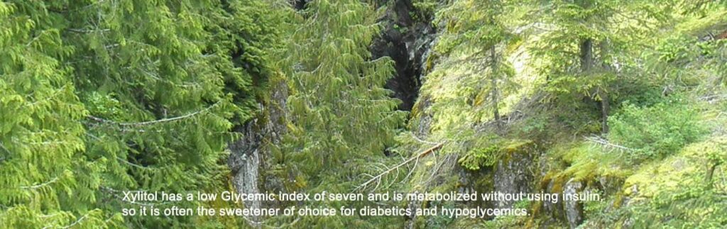 Xylitol is a white crystalline sweetener that has been used in foods since the 1960s. It is a natural substance found in birch trees, corn, strawberries and plums. The human body also produces up to 15 grams per day. Xylitol is as sweet as regular sugar (sucrose) but contains 40 percent fewer calories. It has a low glycemic index of seven, and is metabolized without using insulin, so it is a beneficial sweetener for diabetics and hypoglycemics.